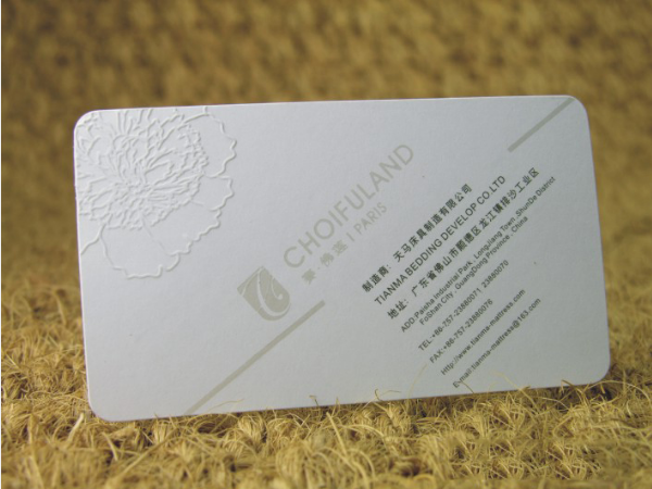 采用凸字工藝制作,凸字工藝的效果從視覺上看讓“字”或“圖形”更加有層次感,加工時(shí)采用**進(jìn)口樹脂凸字粉,使凸起之處更加晶瑩剔透。凸字是對文字和圖案做工藝,將文字和圖案突起在名片紙上。凸字前先將名片印刷上油墨,立即將印刷油墨未干的名片紙粘上凸字粉,然后將粘上凸字粉的名片放進(jìn)凸字機(jī)里經(jīng)行烘烤,文字立即鼓起突現(xiàn)出來。印刷紅色油墨,突出來的文字和圖案就是紅色的,印刷藍(lán)色油墨,突出來的文字和圖案就是藍(lán)色的,也就是說,印刷油墨的顏色決定了凸字的顏色。